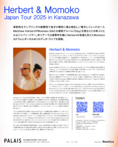 革新的なサンプリングの実験性で鬼才の敬称に最も相応しい電子レジェンドの一人Matthew HerbertがMomoko Gillとの最新アルバム『Clay』を携さえた6年ぶりとなるジャパン・ツアー。本ツアーでは最新作を軸にHerbertの名曲も交えたMomokoのドラムとボーカルありのデュオ・ライブを披露。