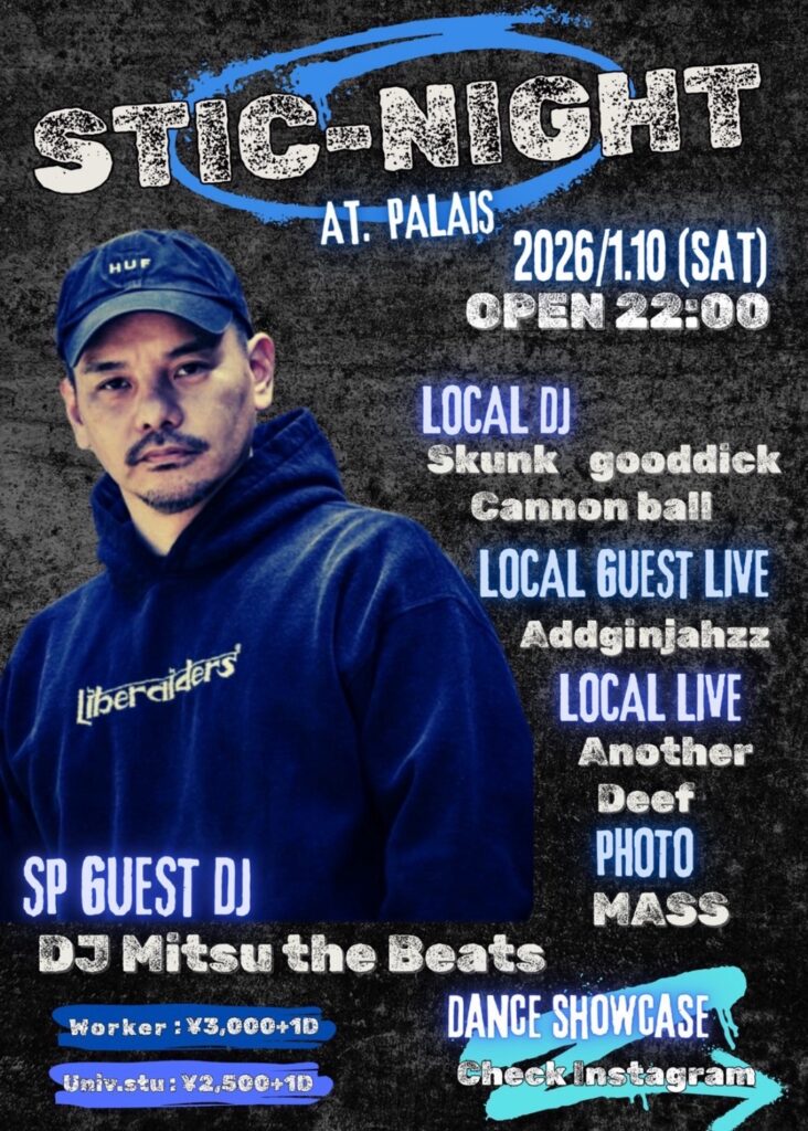 ※同日開催のStic-chain Vol 8のリストバンドを着用の方は、エントランス料金が500円オフとなります