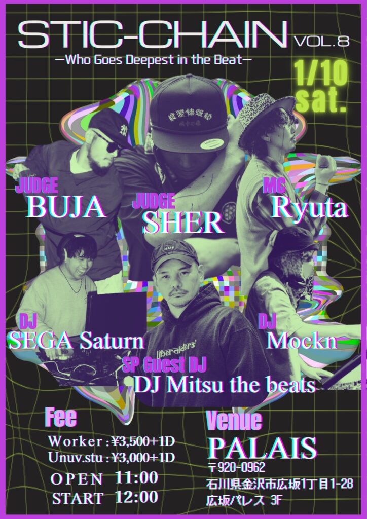 そして今回は、ベスト4 & 決勝はSP Guest DJによるDJ Mitsu the Beatsのビートで踊ることができる。