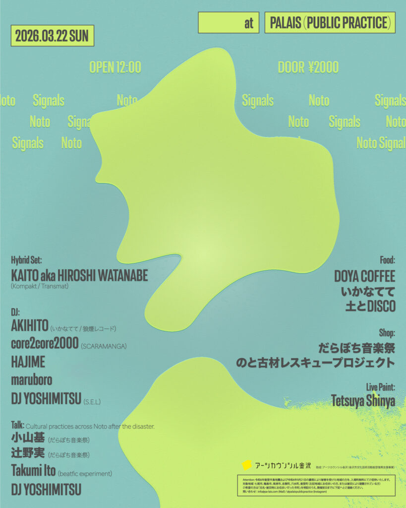 Noto Signals。震災以降の能登で続いている音楽や文化の実践を、現在の担い手たちとともに金沢から紹介するイベント。