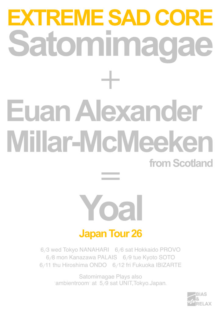 エクスペリメンタルフォークアンビエント作家であるSatomimagaeがスコットランドの盟友 Euan Alexander Millar-McMeekenと共に「Yoal」名義で周るJAPAN TOURが決定。